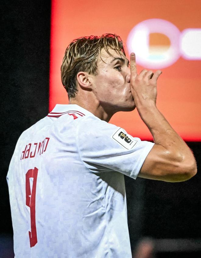 在结束不久的世界杯欧洲区预选赛中,丹麦6-0血洗白俄罗斯。比赛开场仅19分钟,霍伊伦就鬼魅般出现在小禁区前,机敏抢点破门;上半场结束前,他又在门前补射得手。两球在手后,他还送出一次漂亮助攻,帮助前曼联队友帕特里克·多古破门,完成梅开二度+助攻的完美一役。